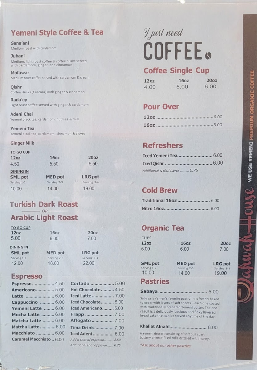 Qahwah House - Lombard Menu
